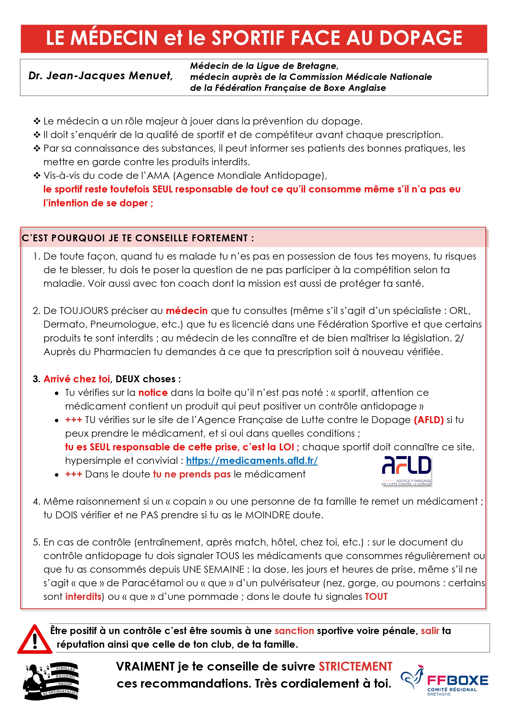 Médecin Régional du Comité Régional de Bretagne de boxe